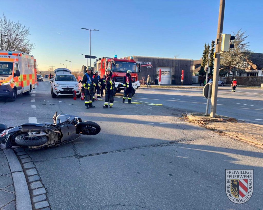 Am Freitagabend wurden wir mit dem Stichwort „Verkehrsunfall mit eingeklemmter Person“ zusammen mit den Feuerwehren Boxdorf, Neunhof und der Berufsfeuerwehr nach Großgründlach alarmiert. Bei Eintreffen an der Einsatzstelle bestätigte sich das Meldebild „eingeklemmte Person“ glücklicherweise nicht, sodass einige Einheiten bereits einrücken konnten. Die Maßnahmen vor Ort beschränkten sich auf die Betreuung der Betroffenen, das Abbinden von Betriebsmitteln, die Sicherstellung des Brandschutzes und die Verkehrsabsicherung. Nach circa 2 Stunden konnten wir wieder einrücken.