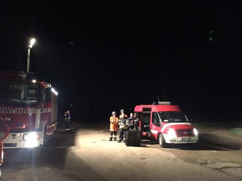 Gestern Abend wurden wir zum zweiten Mal an diesem Tag mit dem Stichwort „Personensuche“ alarmiert. Diesmal ging es gemeinsam mit der Freiwillige Feuerwehr Nürnberg-Boxdorf nach Boxdorf. Dort hatten Passanten Hilferufe in einem Waldstück nahe der Gründlach wahrgenommen. Wir suchten mit Wathosen ausgestattet die Ufer des Flusses ab, durchkämmten das Waldstück und übernahmen Verkehrssicherungsmaßnahmen. Außerdem sorgten wir für ausreichend Beleuchtung, damit die angeforderten Drohnen der Feuerwehr Erlangen und der Bergwacht gefahrlos starten konnten. Leider blieb die Suche auch 3 Stunden nach Alarmeingang erfolglos.