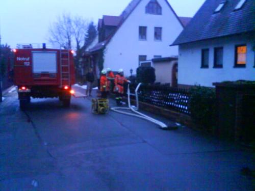 Am Morgen des 21.01.2009 gegen 07:30 Uhr wurden wir mit der Meldung „Wasserrohrbruch“ in die Straße Am Klosterfeld alarmiert. Kurz darauf rückten wir mit dem Löschgruppenfahrzeug und dem Rüstwagen aus. In den Keller eines Hauses drang über ein Energieversogungsrohr Wasser ein. Das Wasser kam aus einer Hauptwasserleitung im Straßenbereich. Mit 2 Tauchpumpen wurde das Wasser aus dem Keller gepumpt. Nach dem Eintreffen des Technischen Notdienstes der N-Ergie wurde die schadhafte Ringleitung abgesperrt, daraufhin konnte der Wassereintritt gestoppt werden und das Abpumpen zeigte Erfolg. Nach ca. 3 Stunden rückten wir wieder ein.