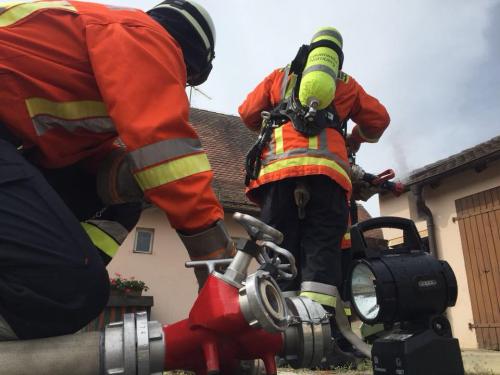 Nachdem die für heute geplante Übung mit der Berufsfeuerwehr und der FF Eibach leider kurzfristig abgesagt werden musste, entschlossen wir uns spontan eine eigene Übung zu veranstalten. Zusammen mit einigen Mitgliedern aus unserer Jugendfeuerwehr trainierten wir die Brandbekämpfung aus mehreren Rohren und die Wasserförderung über eine längere Schlauchstrecke. So wurde der ohnehin schon freigehaltene Vormittag noch sinnvoll genutzt.